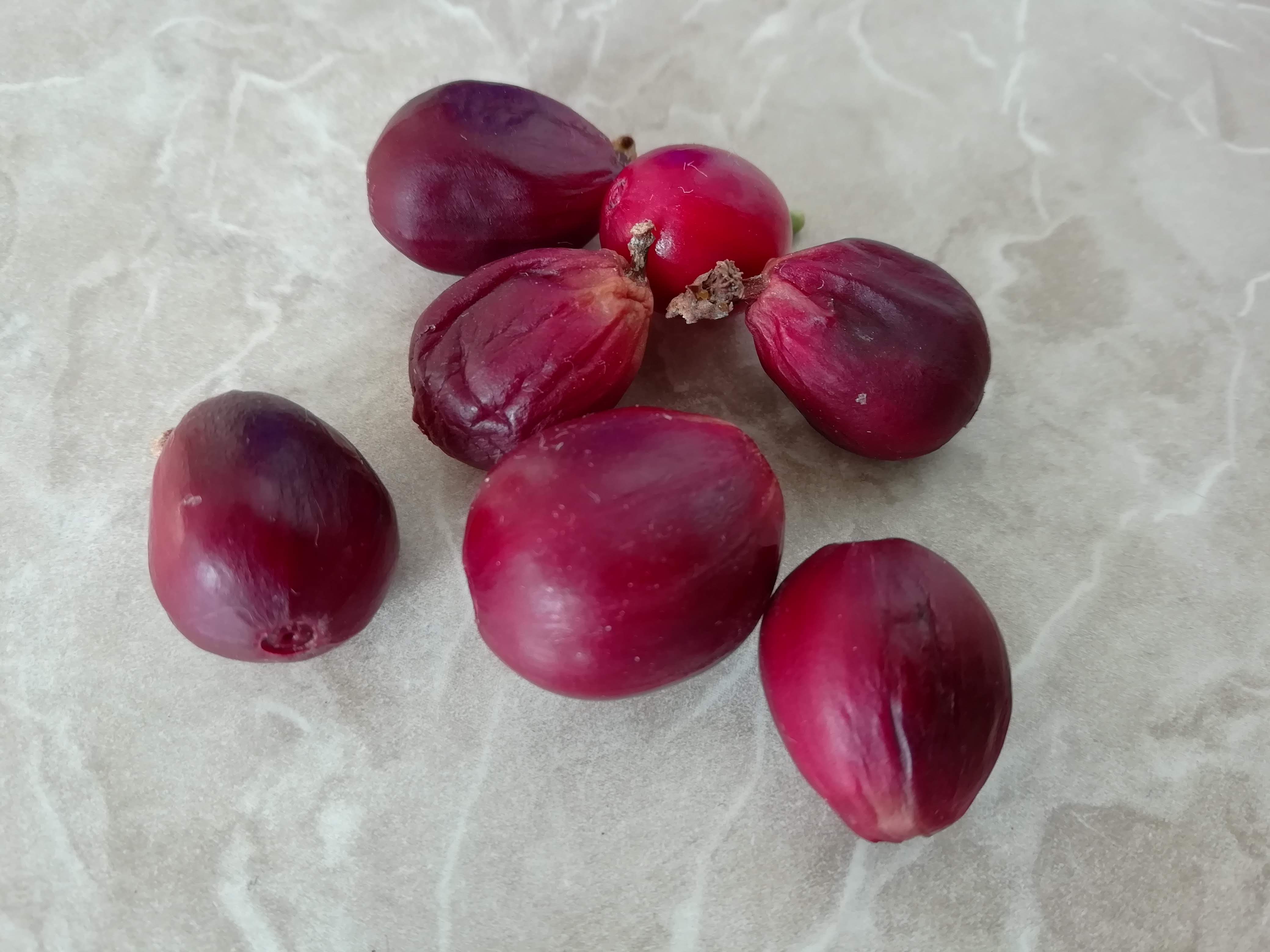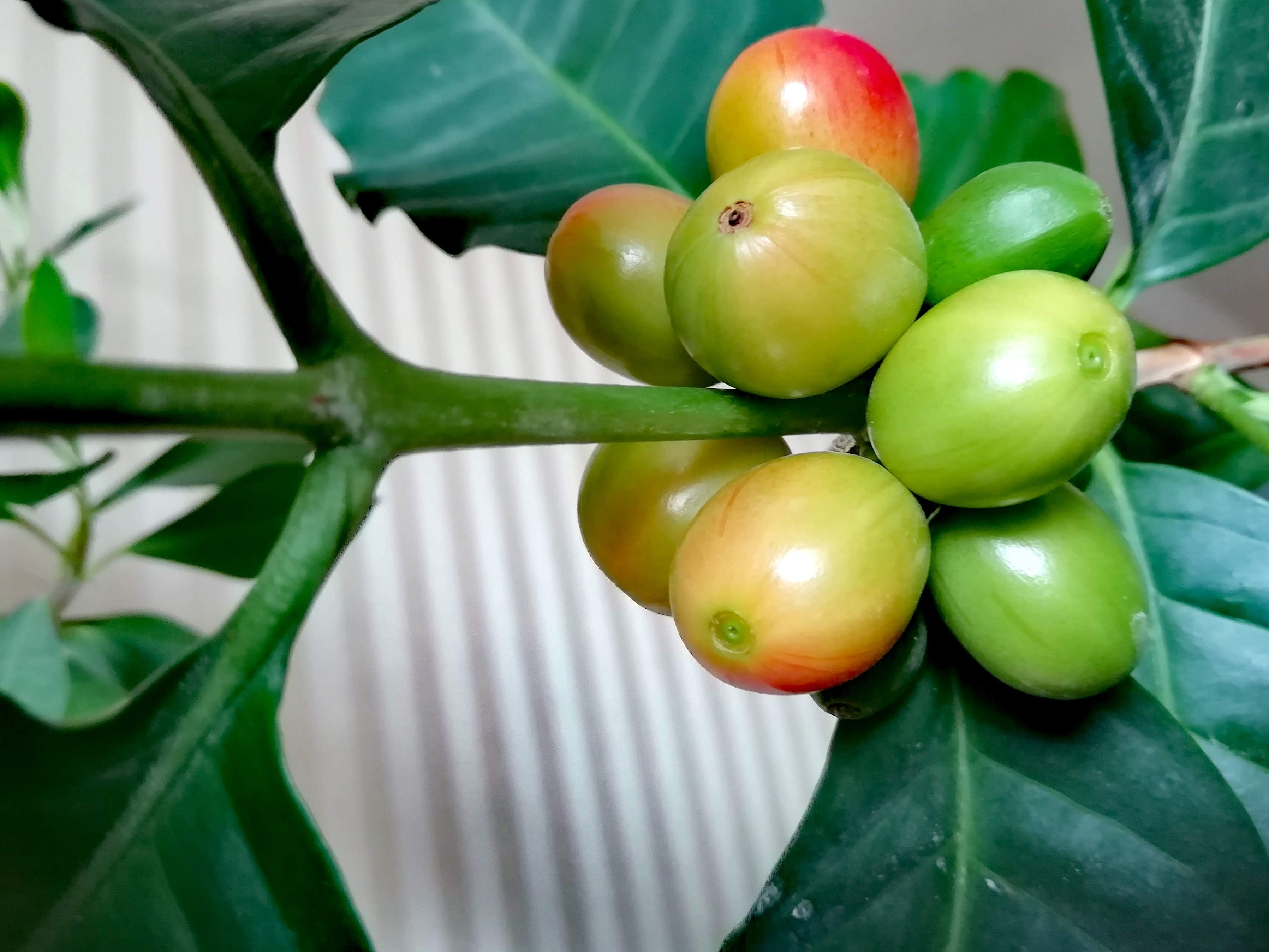 Coffee Cherries are colorful, this process look likes as rainbow: from dark green to light green-yellow-red to dark red; the seeds, covered with sticky fruity muscilage. When it reaches dark red color, beans is gathered and planted for new generation, which after few month looks for new, lovely family to take care of them and keep seddlings to grow and become a strong!